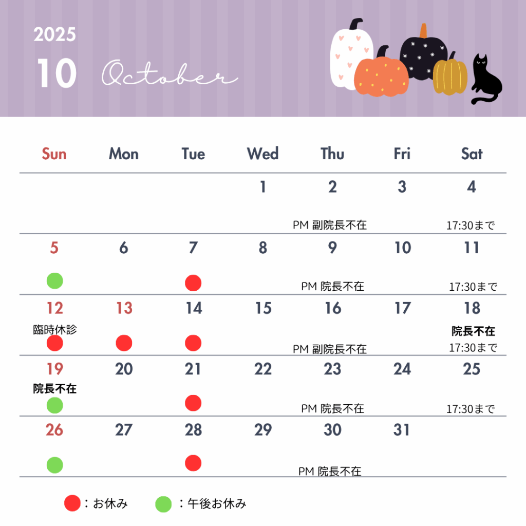 10月の診療日18日(土)~19日(日)は院長が不在になります。